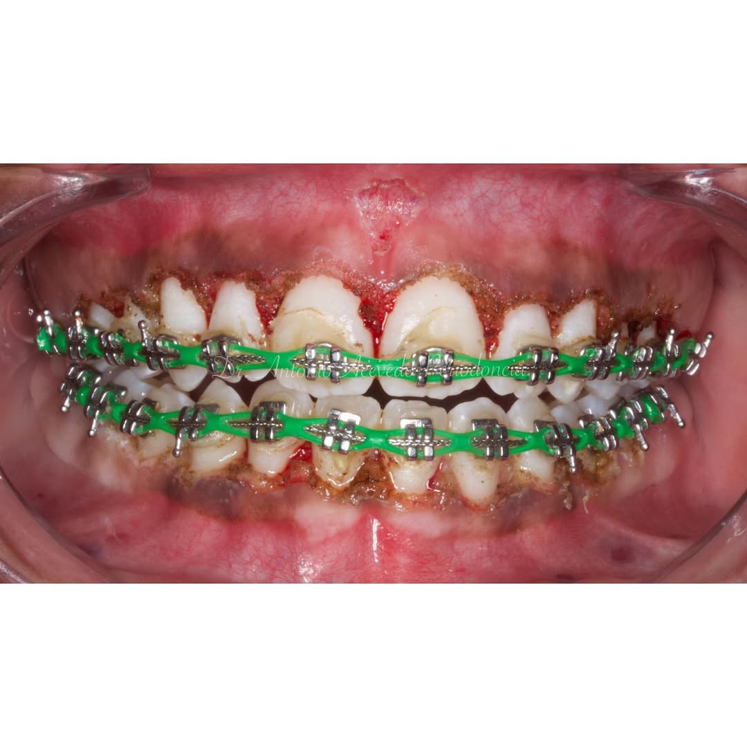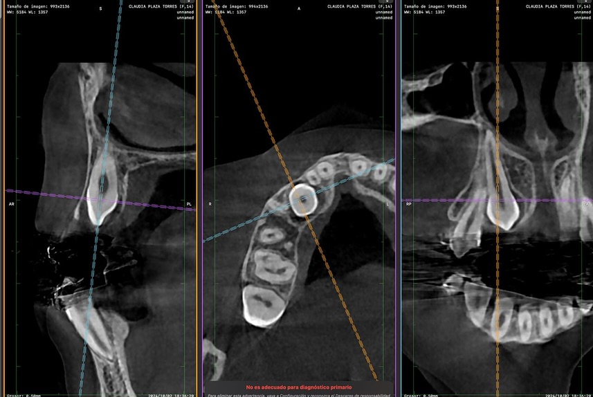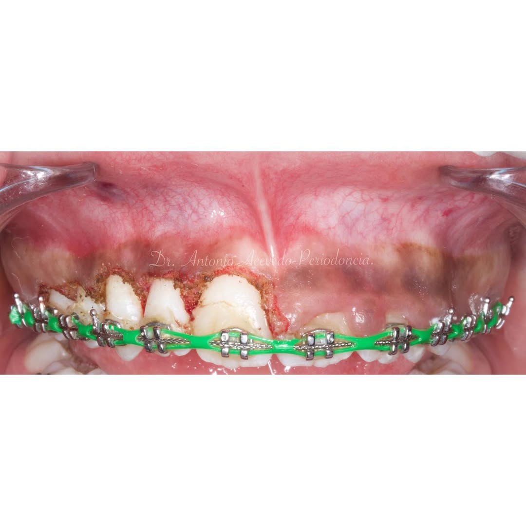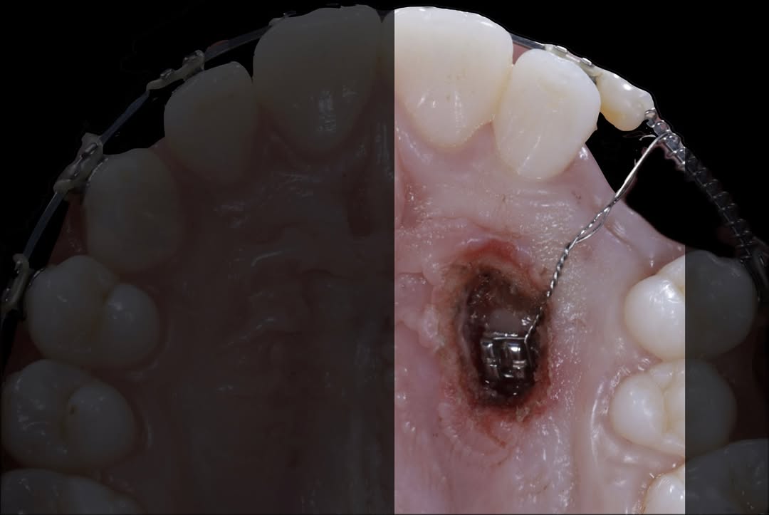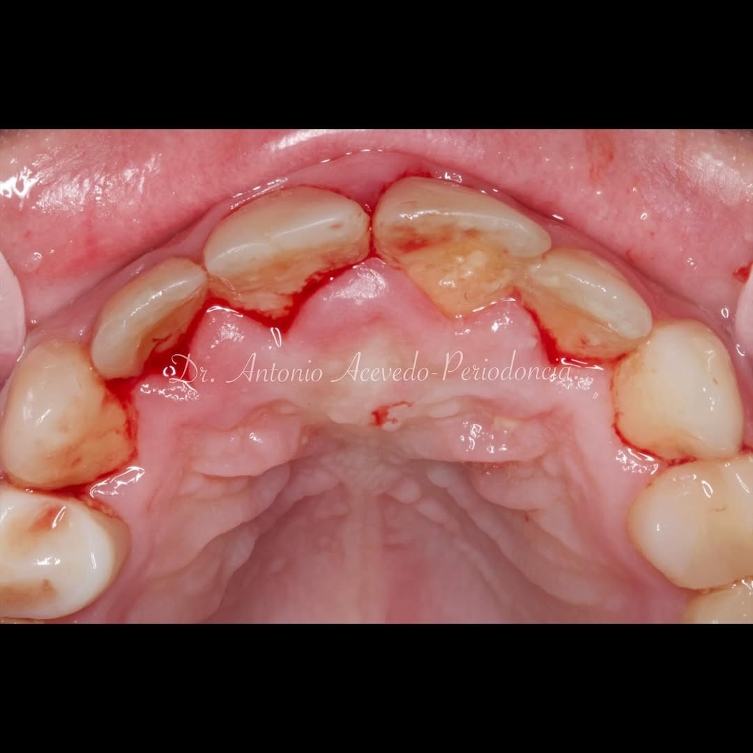 Ya se han realizado la extracción de los dientes 12, 11, 21, 22 para garantizar el cierre de tejidos blandos. El día de la cirugía, el alumno verá todo el procedimiento en una pantalla en directo en la sala de cirugía, ya que todo será realizado con un microscopio operatorio.