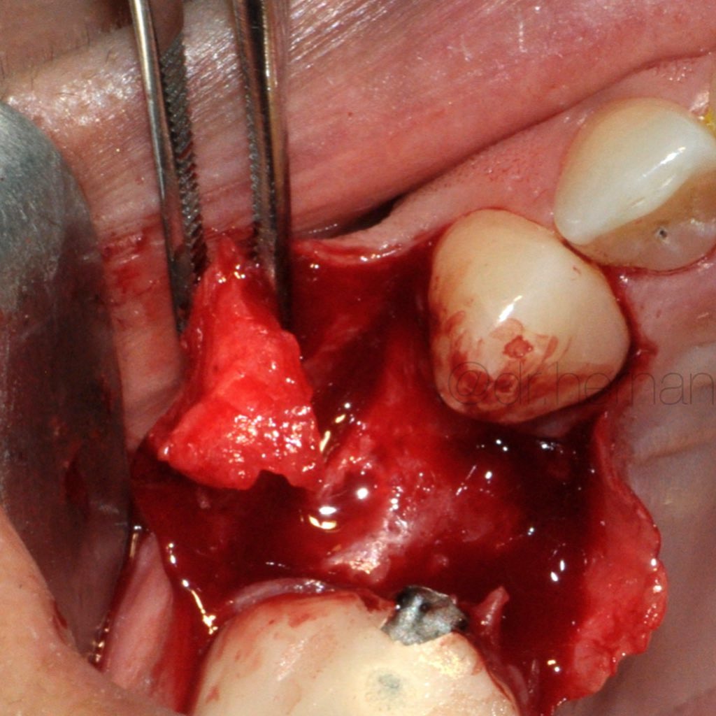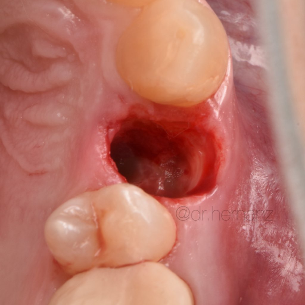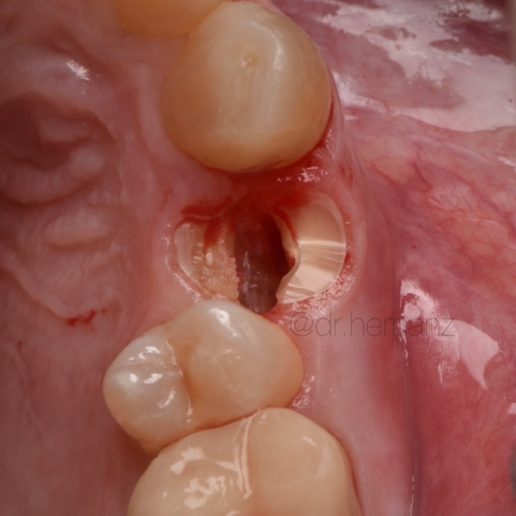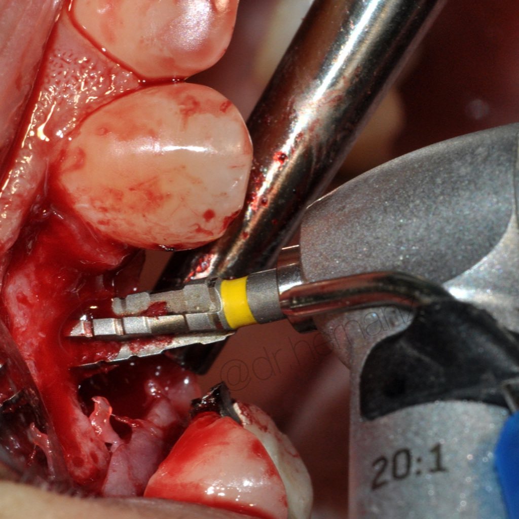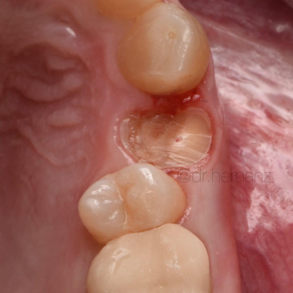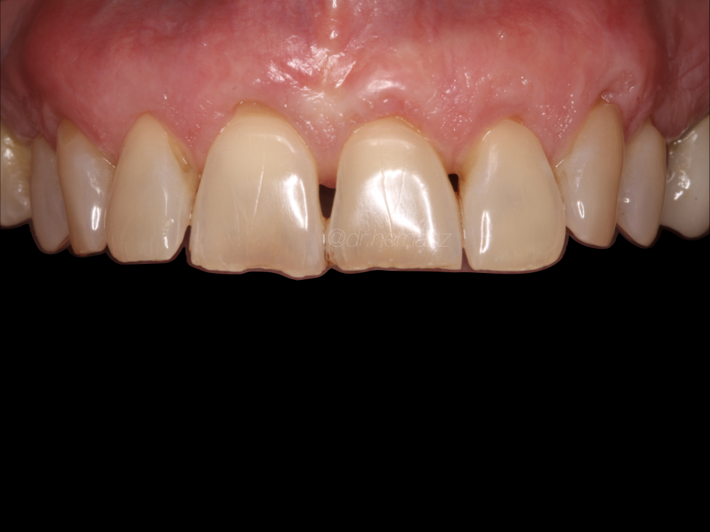 Ya se han realizado la extracción de los dientes 12, 11, 21, 22 para garantizar el cierre de tejidos blandos. El día de la cirugía, el alumno verá todo el procedimiento en una pantalla en directo en la sala de cirugía, ya que todo será realizado con un microscopio operatorio.